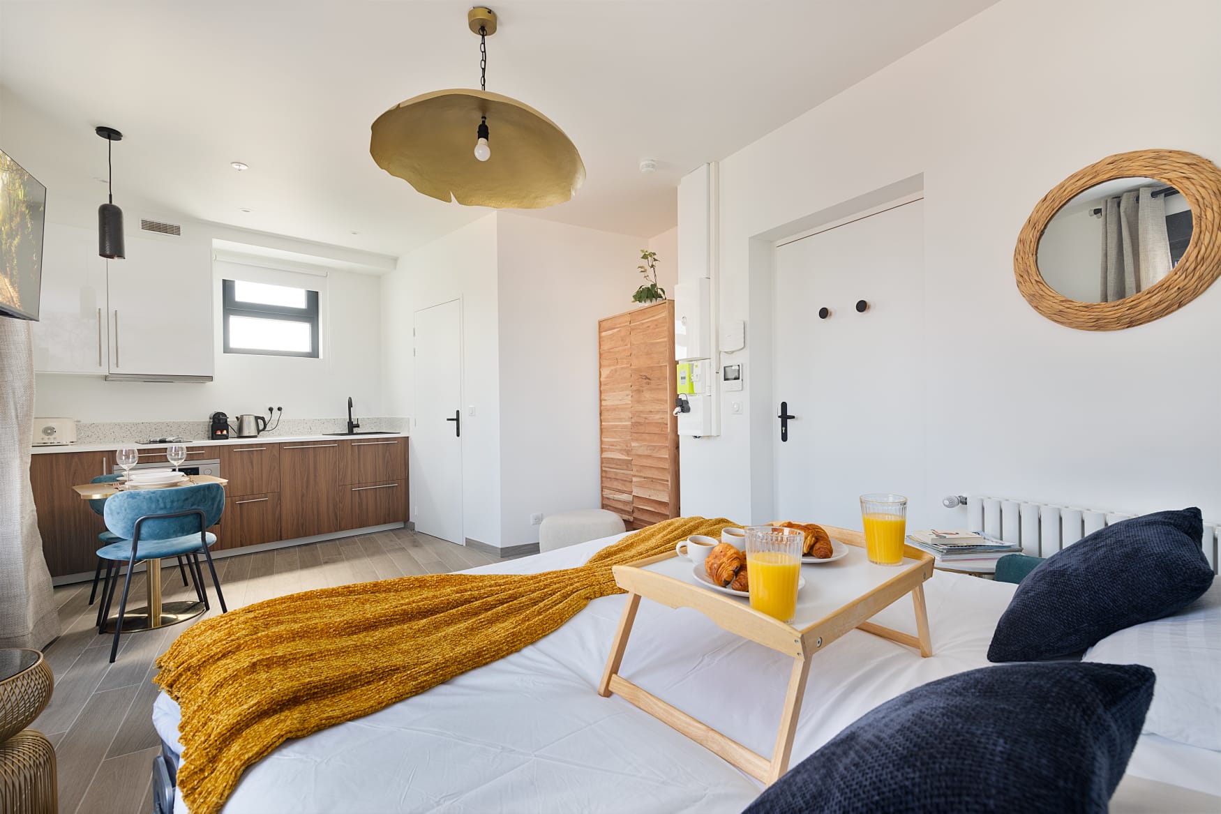 Ce studio de 25 m² propose une ambiance chaleureuse et intimiste, idéale pour un court séjour à Paris.