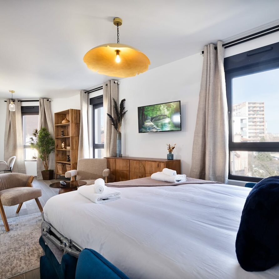 Cuisine équipée, isolation phonique, chauffage, Wi-Fi et équipements essentiels pour un séjour sans contraintes.